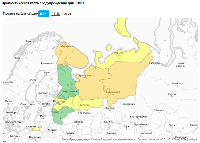 Синоптики, как ранее писал "ДП", обещают снег и морозную погоду как минимум до 8 января. На Северо-Западе на неделе будет преобладать более холодная, чем обычно, погода. В Петербурге в ближайшие несколько дней будет действовать жёлтый уровень погодной опасности из-за очень низкой температуры. По данным на утро 5 января предупреждение было актуально.