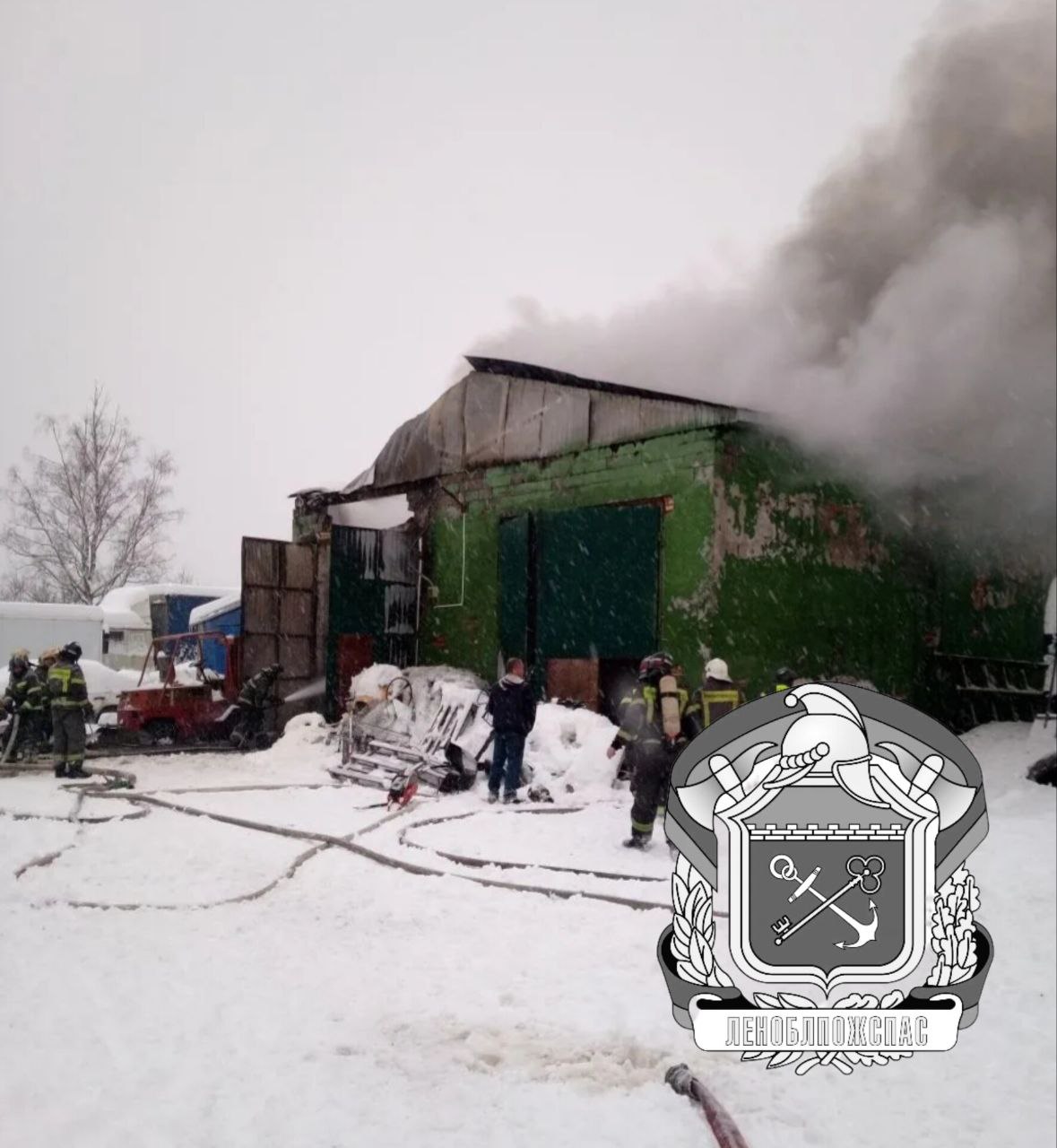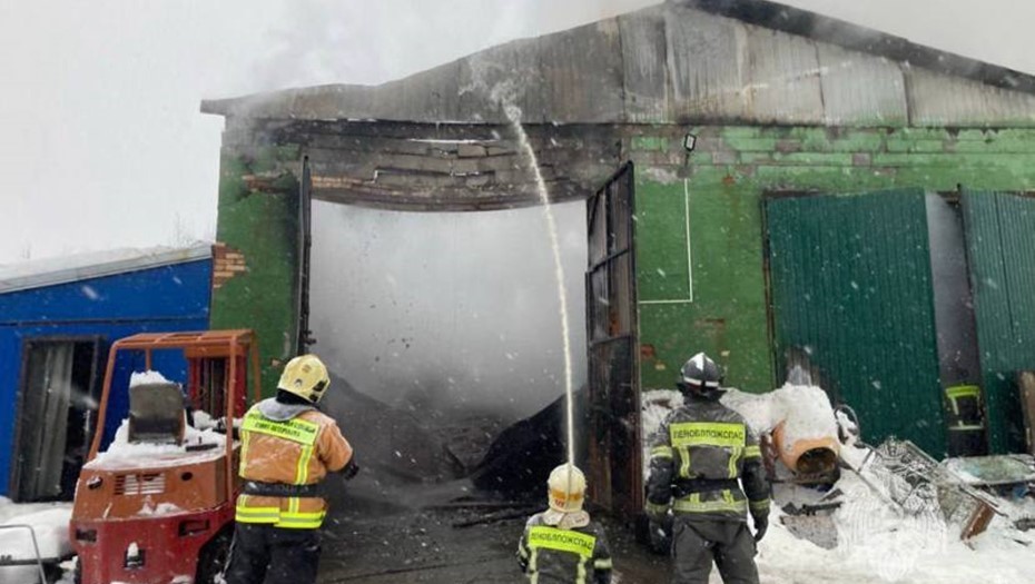 В МЧС сообщили о возгорании в Кировске в 10:56. Огонь охватил ангар на улице Победы д. 43. Горело строение размером 12х14 метров.