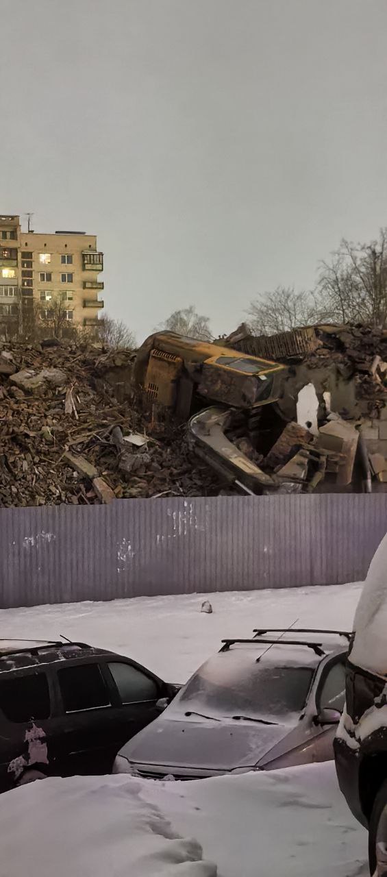 В Петербурге 10 января при сносе здания Всесоюзного НИИ целлюлозно-бумажной промышленности (ВНИИБ) на 2-м Муринском проспекте завалился на бок экскаватор, сообщают градозащитники.