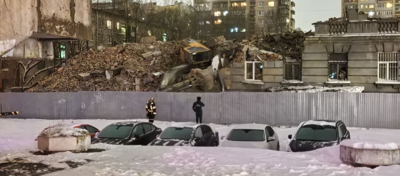 Экскаватор не выдержал снос ВНИИБ в Петербурге