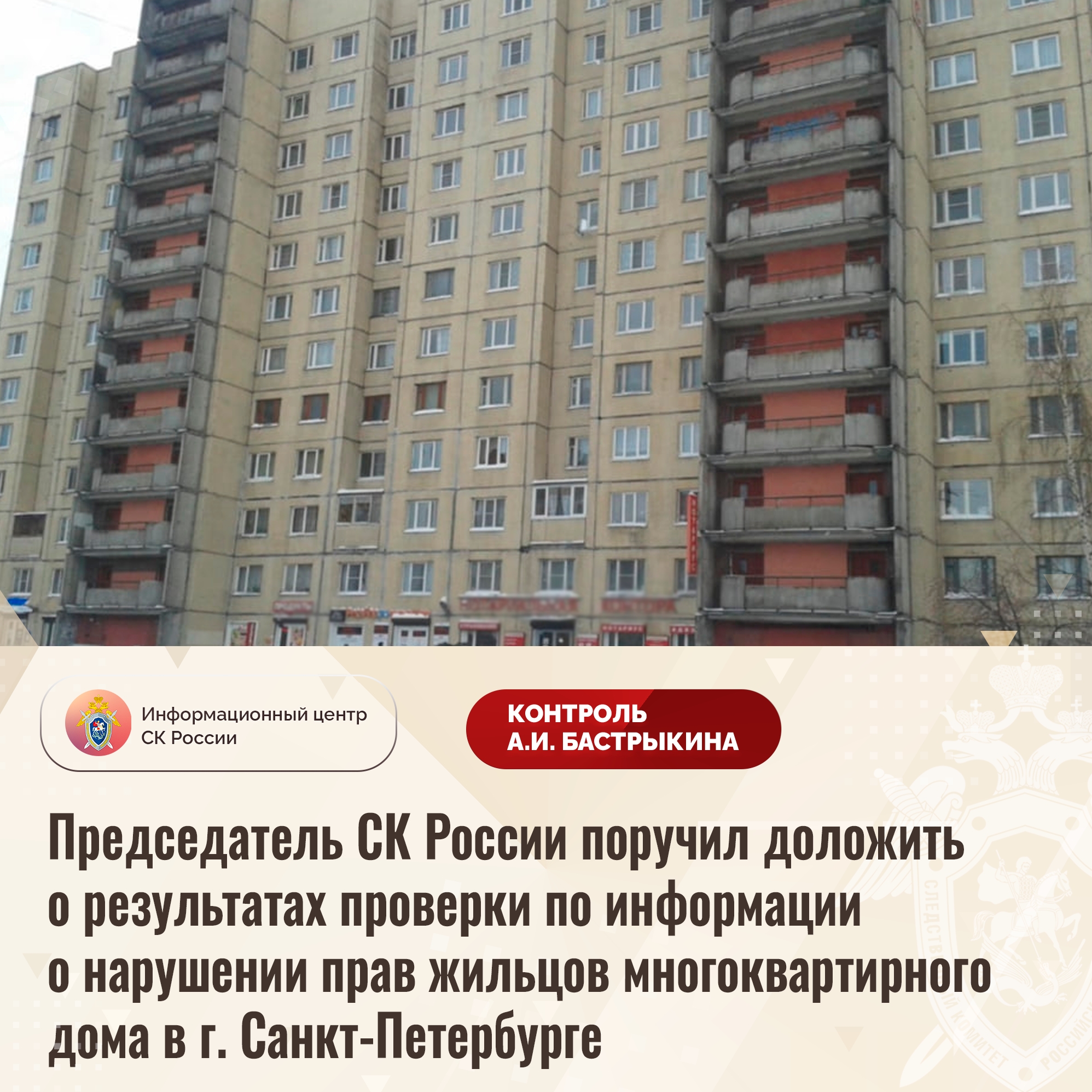 Глава СК РФ Александр Бастрыкин поручил доложить о ненадлежащем обслуживании и содержании дома на улице Коллонтай в Петербурге, жители которого регулярно жалуются на протечки, сообщили в пресс-службе городского ведомства