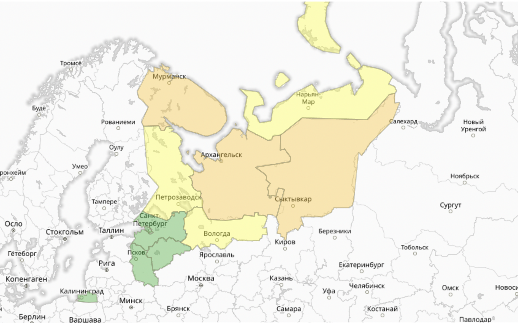 Прогностическая карта предупреждений для СЗФО