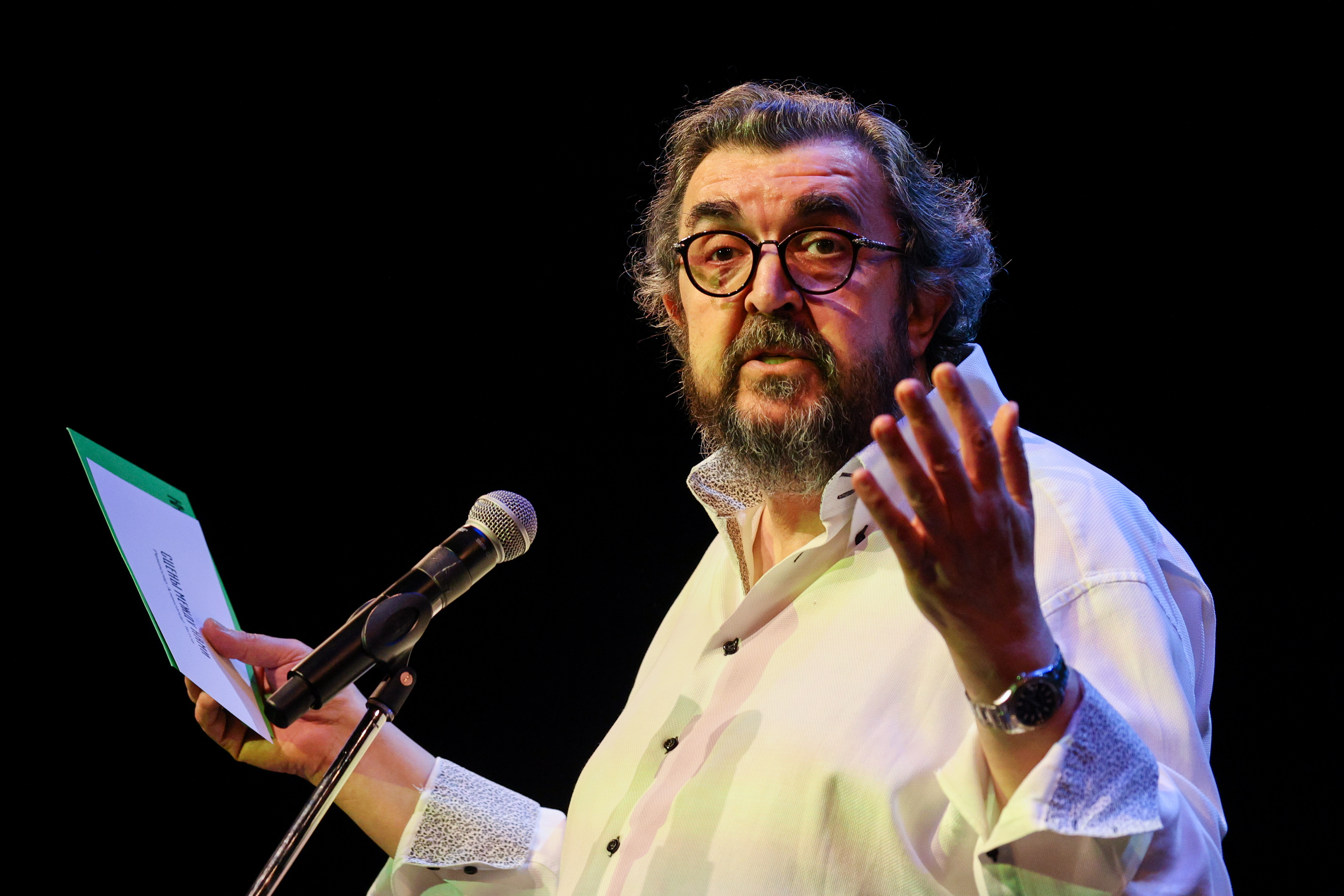 Ректор Школы-студии МХАТ Игорь Золотовицкий на церемонии награждения лауреатов ежегодного конкурса короткометражного кино в МХТ имени Чехова. Июнь 2025 года