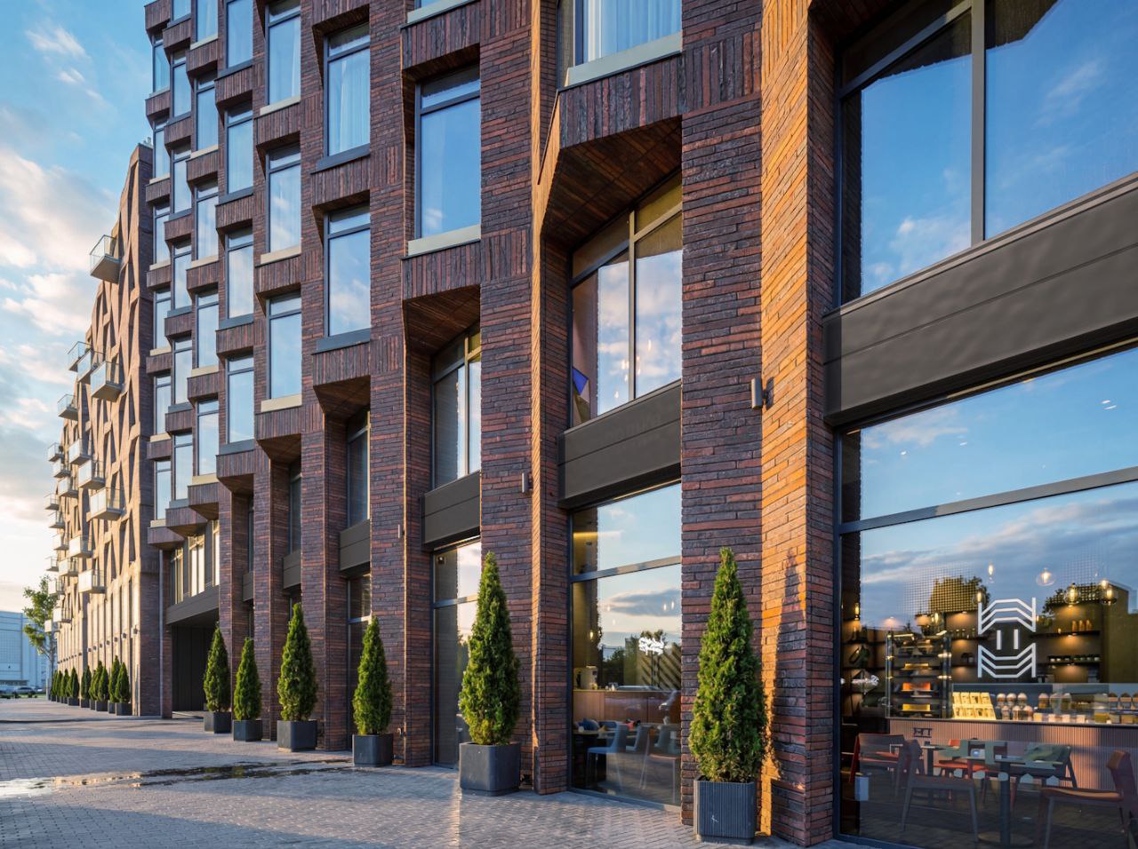 Главный фасад, выходящий на Большую Невку, сформируют три двора-курдонёра, что "является новым решением в современной петербургской архитектуре высокого класса". В составе проекта уже есть одно завершённое здание. В декабре ГК "ПСК" ввела в эксплуатацию воссозданный исторический флигель (Выборгской наб., 61, корп. 4), высотой три этажа.