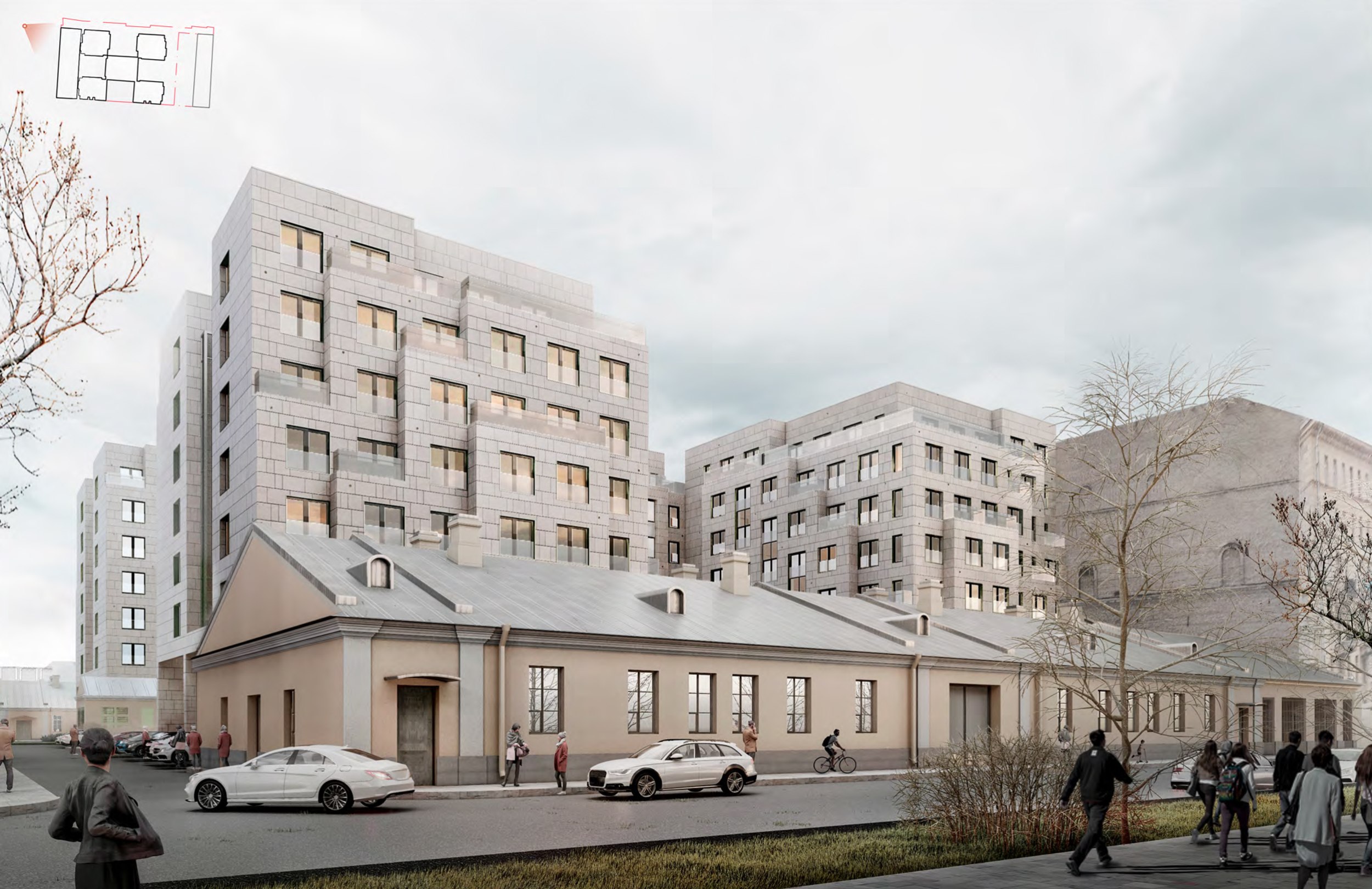 Проектом предполагается строительство на участке многоквартирного жилого дома со встроенными помещениями и подземным паркингом на 162 машино-места, с реконструкцией здания бывшей конюшни (Шпалерная ул. 51,К).