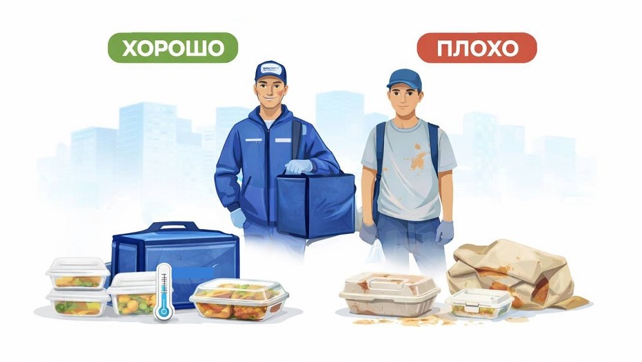 Чистая одежда, аккуратность, здоровый внешний вид и отсутствие признаков респираторных заболеваний, а также использование специализированных сумок напрямую влияют на безопасность продукта. Курьер является частью пищевой цепочки, а не только участником логистического процесса.