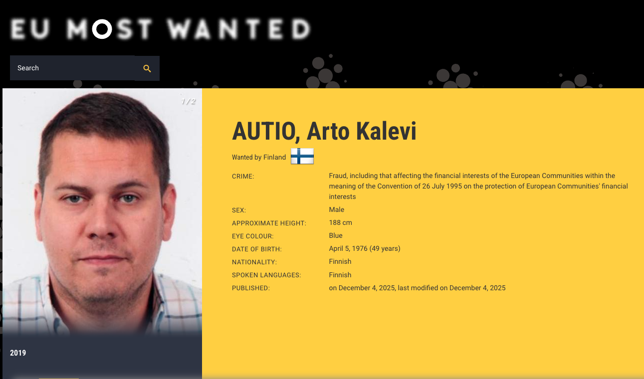 Финляндия добилась включения Аутио в список самых разыскиваемых преступников Европы.