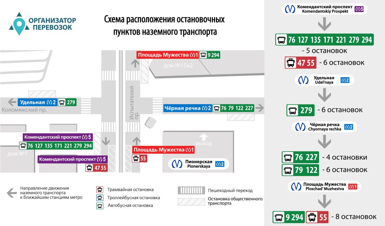 Схема проезда наземный транспортом от станции "Пионерская"