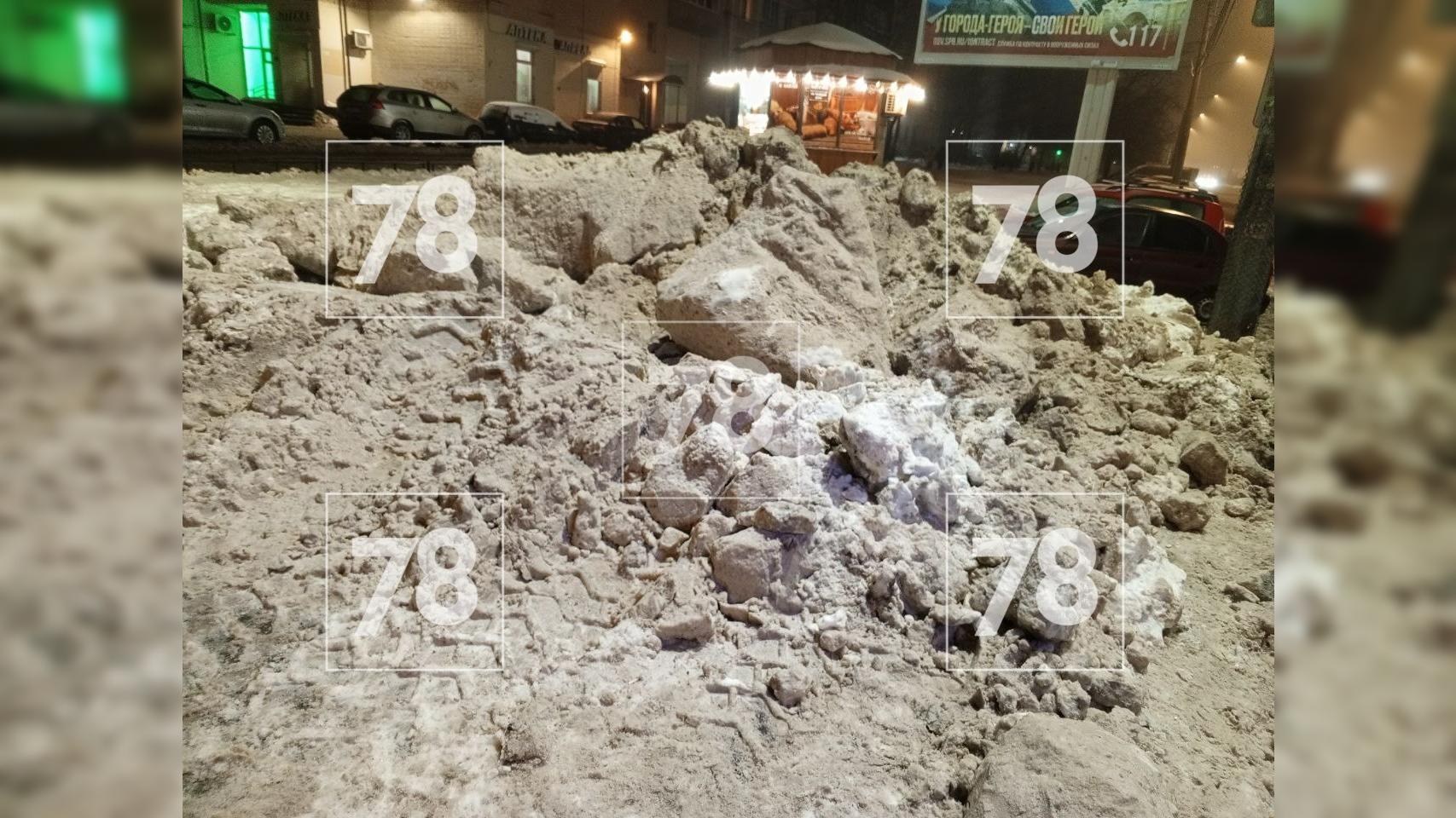 78.ru также рассказал о наличии двух больших куч неубранного грязного снега у ТРК "Норд" на проспекте Просвещения.
