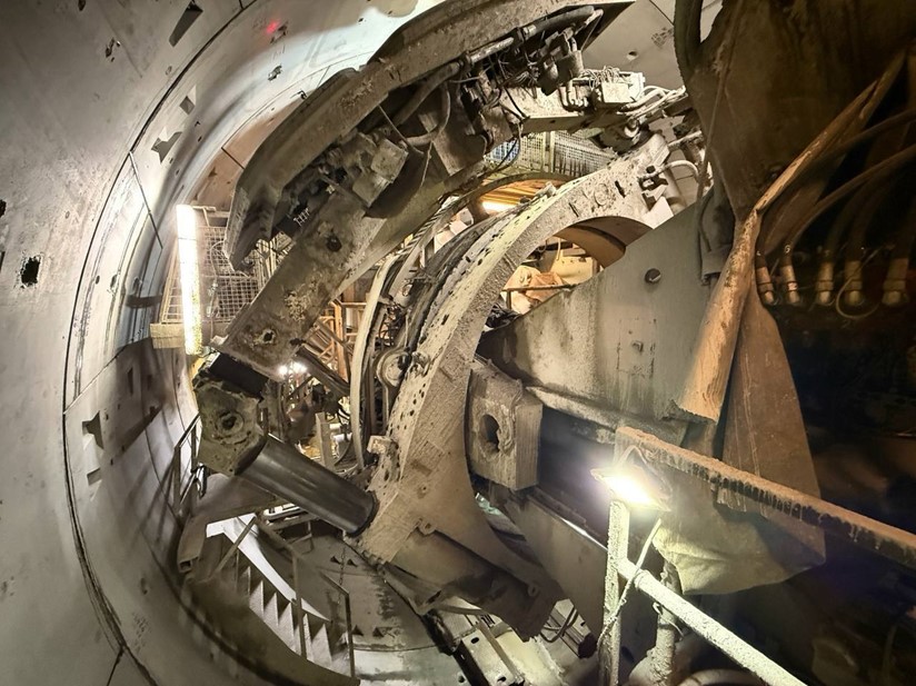 Щит уже прошёл входную торцевую стену станции "Каменка" в декабре и продолжает движение.