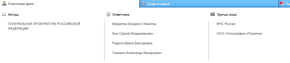 В качестве ответчиков также выступают бывший владелец типографии Александр Тимохин и Сергей Ким. Генпрокуратура помимо взыскания компании добивается выплаты от ответчиков 1,1 млрд рублей, которые они получили в счёт оплаты проданного актива.