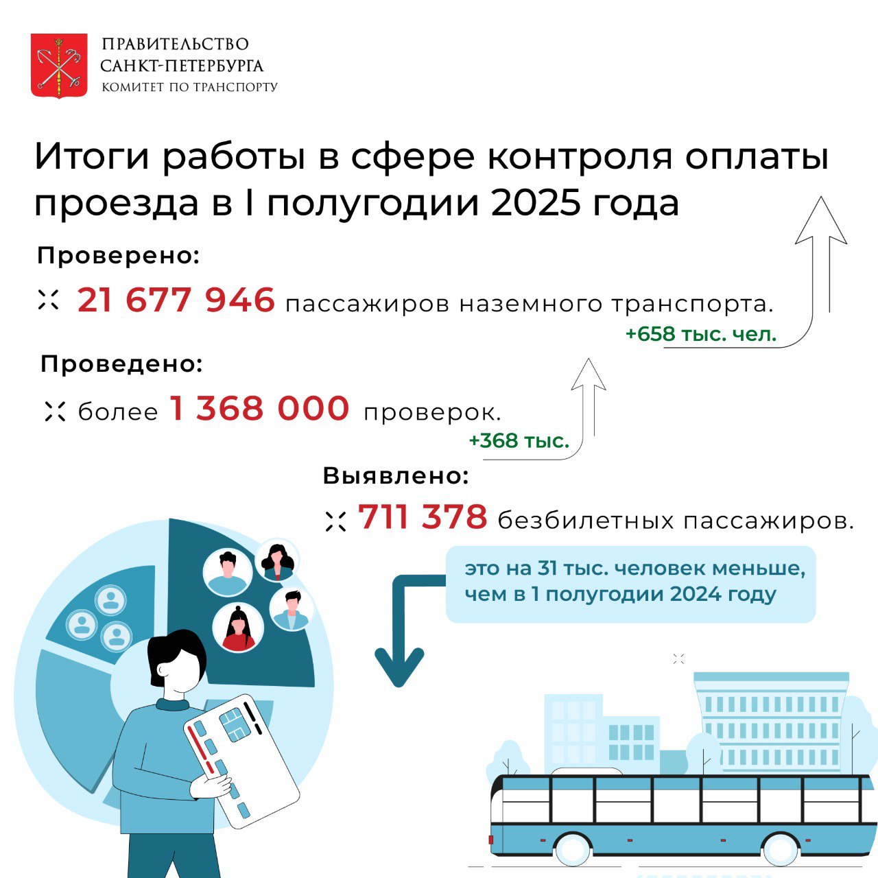 Так, с января по июнь 2025 года контролёры проверили свыше 21,6 млн пассажиров наземного транспорта, а на безбилетном проезде попались 771,3 тыс. пассажиров — на 31 тыс. человек меньше по сравнению с аналогичным периодом 2024 года.