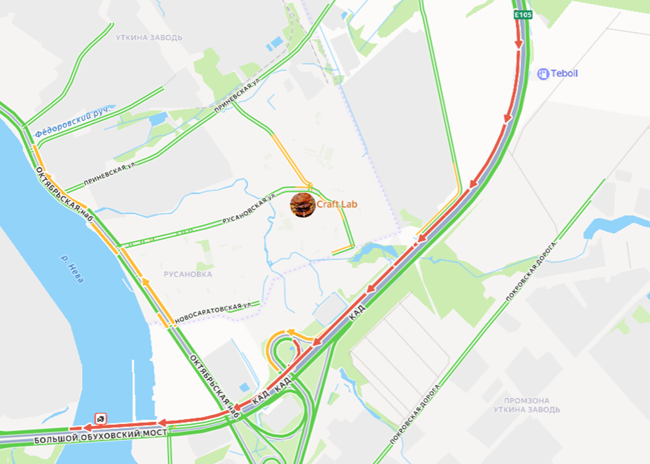 Трёхкилометровая пробка образовалась на КАД в результате аварии с четырьмя автомобилями на Большом Обуховском мосту, следует из данных "Яндекс Карт".