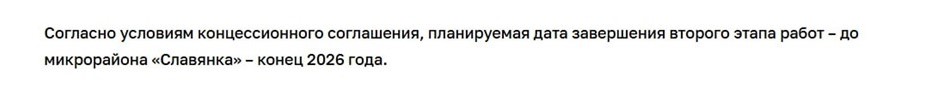 В комитете по транспорту вопрос о сроках запуска адресовали комитету по инвестициям. Там сообщили "ДП", что сроки по соглашению прежние. В Коминвесте пояснили, что речь, вероятно, про следующий этап по отношению к первому, который состоялся в 2025 году.
