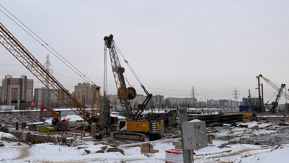На текущий момент на объекте продолжается устройство "стены в грунте" (СВГ) — ограждающих конструкций будущего котлована. Работы ведутся на двух площадках.