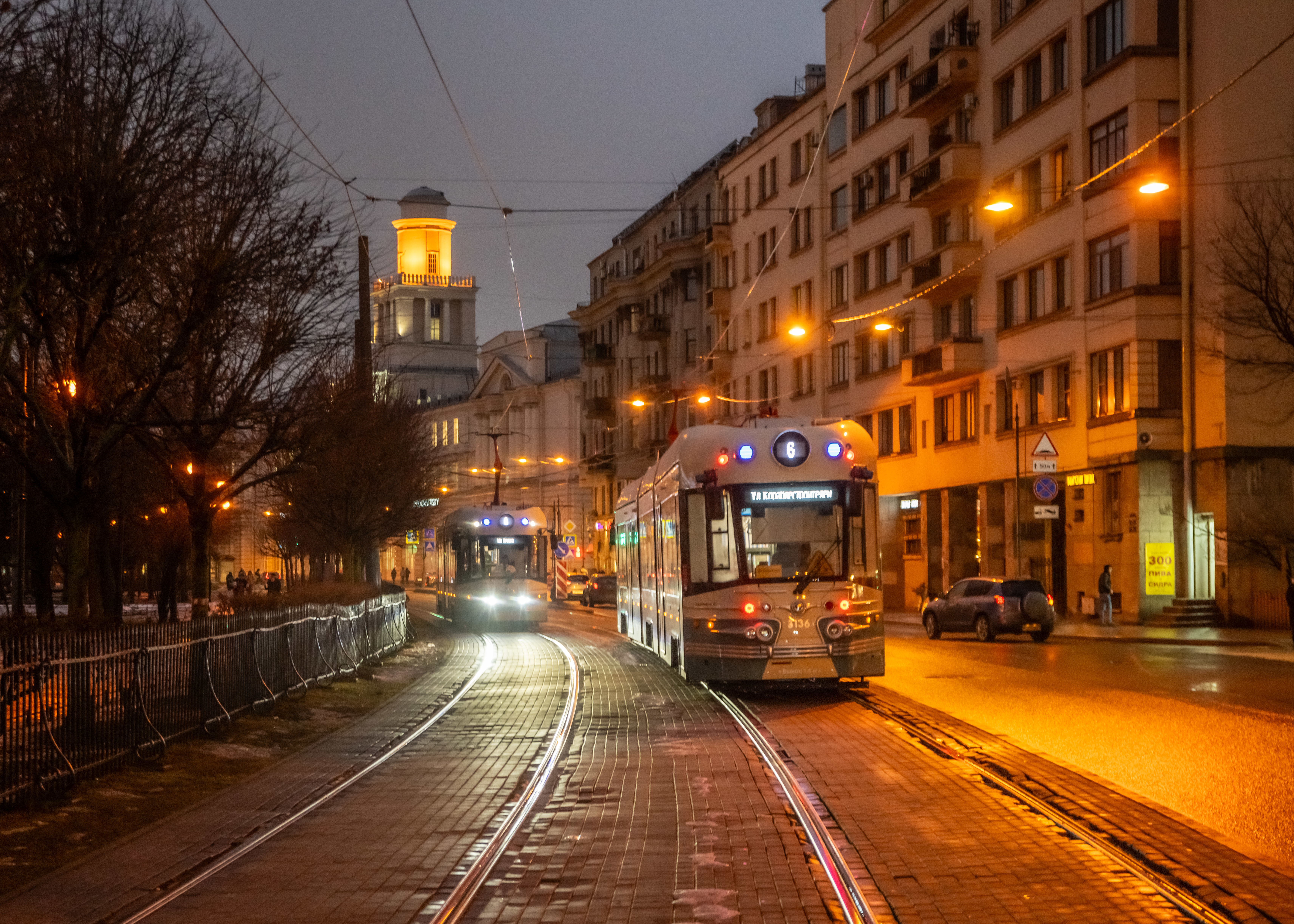 "Трамваи, которые мы сделали для центра, — это не копия ЛМ–57, который прозвали “Стилягой”. Они только напоминают модель, разработанную Иосифом Ваксом. У нас получился по–настоящему ретрофутуристический трамвай: он подъезжает — “старый”, гармонирующий с набережными, мостами, фасадами, но открывает дверь — и вы делаете шаг в будущее, потому что внутри это суперсовременная машина со всеми высокотехнологичными системами, включая АБПВ, а также интерактивным окном–экраном “Белые ночи”, которое прямо во время поездки проводит экскурсию по достопримечательностям", — рассказывал о новинке Денис Минкин.