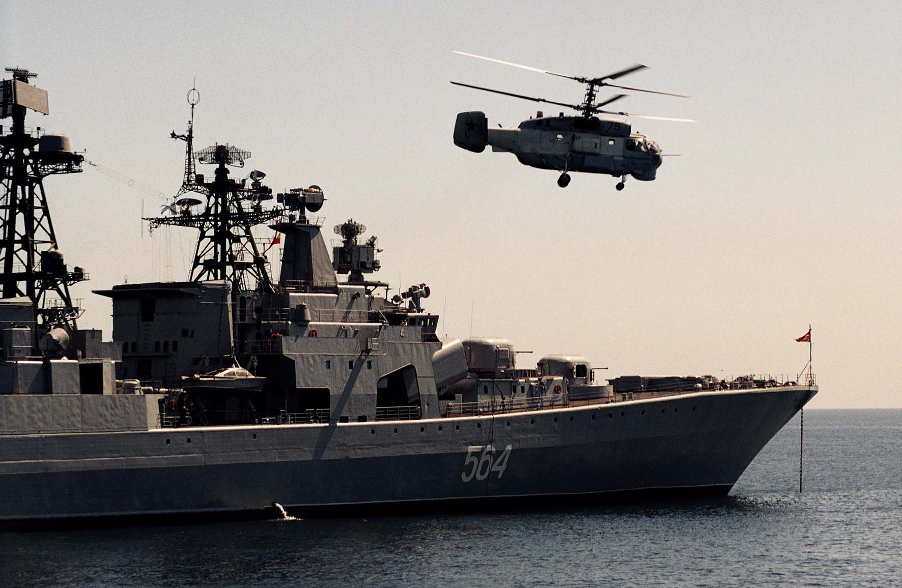 Вертолётчики обнаружили местонахождение субмарины с помощью опускаемой гидроакустической станции, после чего координаты были переданы на командный пункт корабля. Экипаж установил контакт с "вражеской" подлодкой.