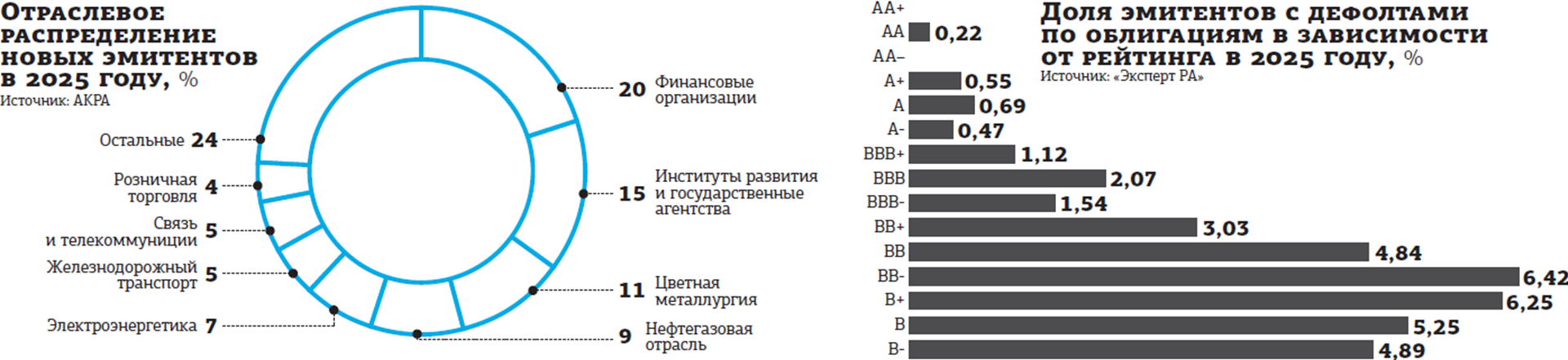 Такие опасения не беспочвенны. В "Эксперт РА" подсчитали, что в период с 1 января по 15 октября 2025–го количество технических и фактических дефолтов на рынке облигаций и ЦФА составило 26 против 11 за весь 2024 год. АКРА уточняет: дескать, практически все дефолтные компании относились к эмитентам сегмента высокодоходных облигаций (с кредитными рейтингами на уровне BBB и ниже, а также без кредитных рейтингов).