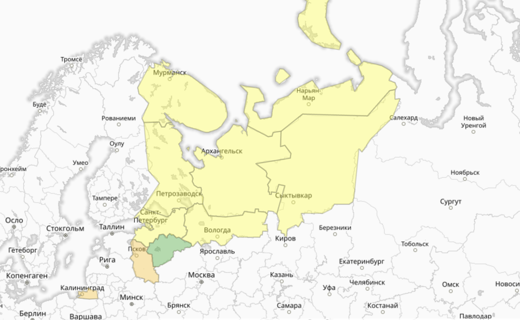 Напомним, "жёлтый" уровень означает потенциально опасную погоду.