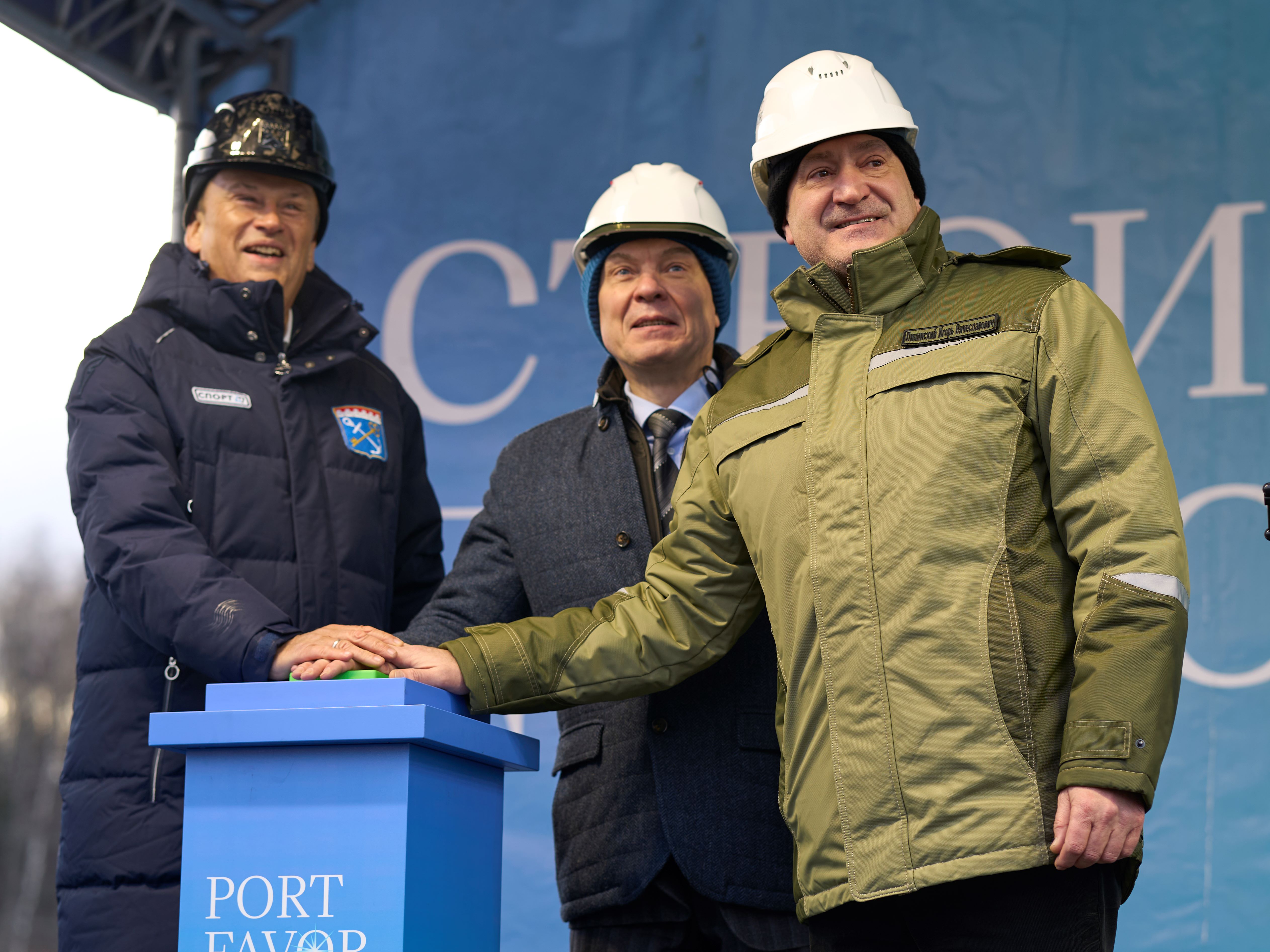Губернатор Ленинградсккой области Александр Дрозденко и директор Port Favor Игорь Липинский на открытии комплеса по перевалке аммиака в Усть-Луге