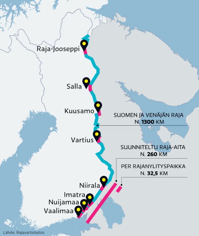Проект Itärajan esteaita (с финск. "Восточный пограничный барьер") стал зоной ответственности Пограничной охраны Финляндии.