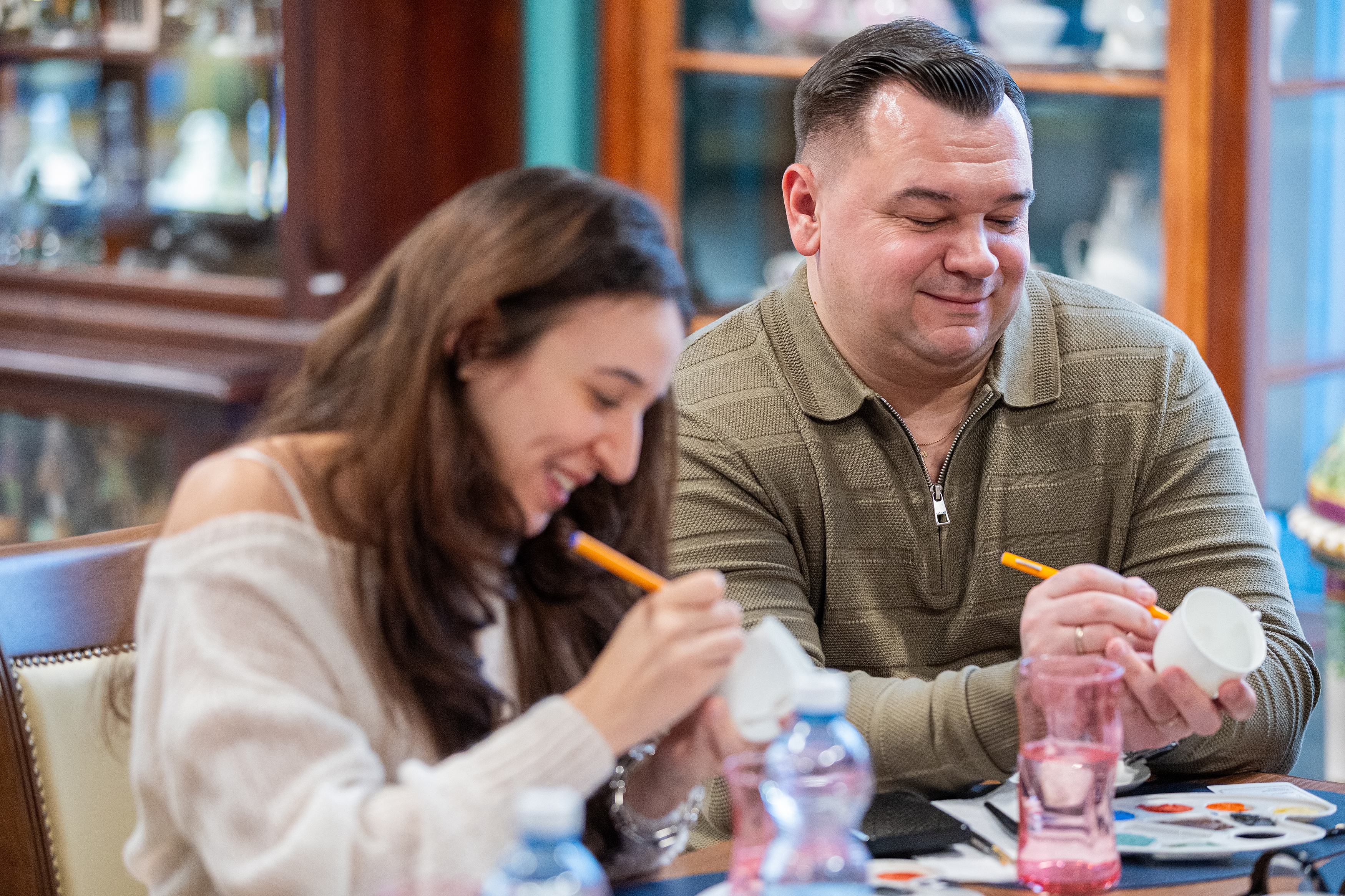 Каждый из участников Экспертного клуба "ДП" своими руками расписал чайную пару.
