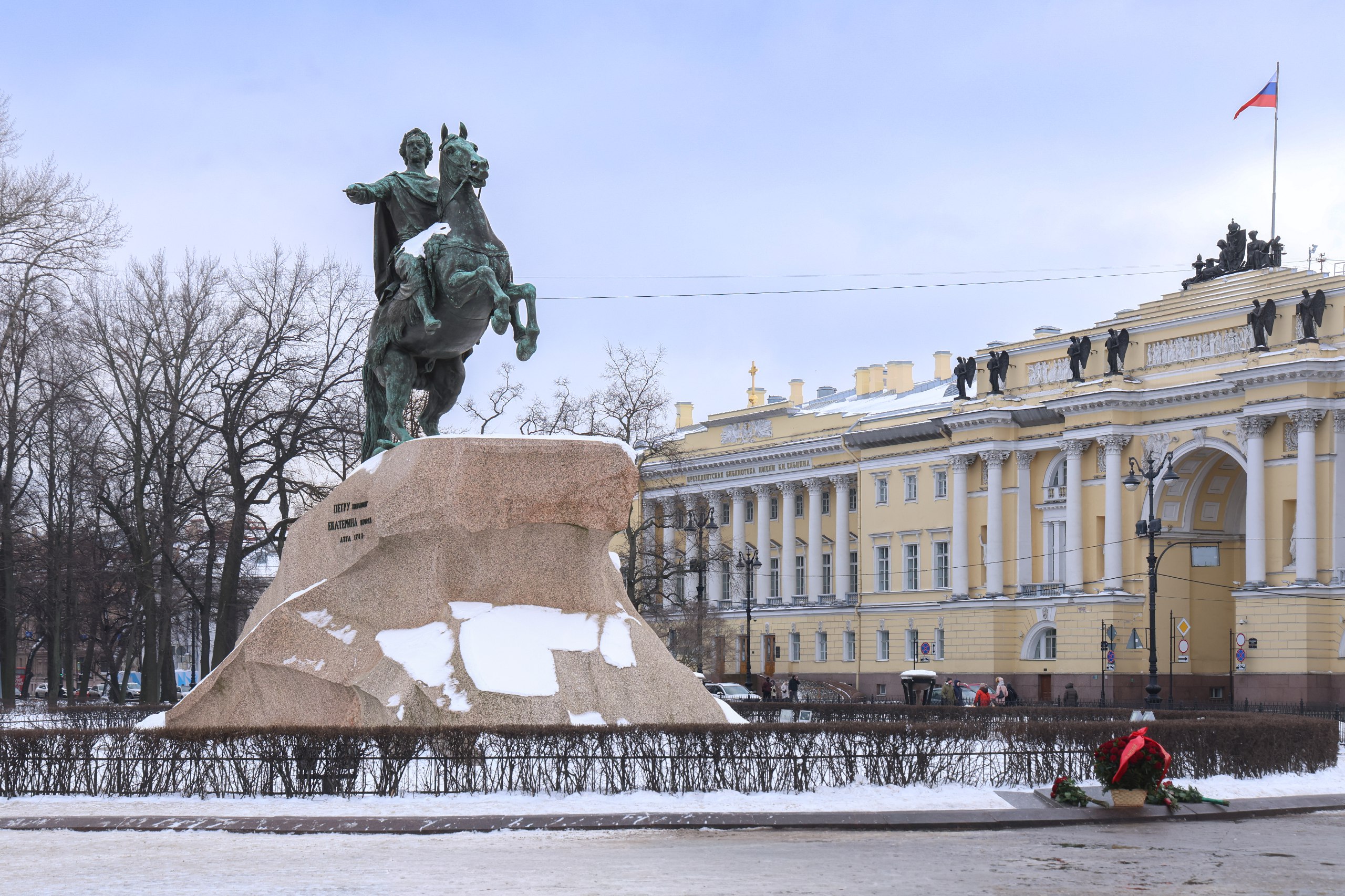 Губернатор Петербурга Александр Беглов возложил цветы к памятнику "Медный всадник" на Сенатской площади, сообщили в пресс-службе городского правительства.