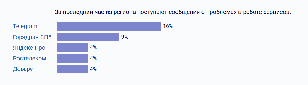 20% обращений касались работы мессенджера Telegram.