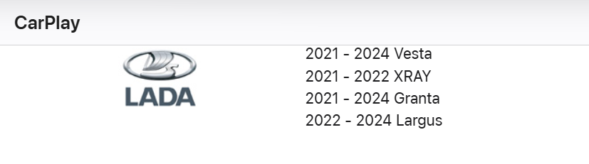 Cписок автомобилей Lada с поддержкой сервиса Apple CarPlay