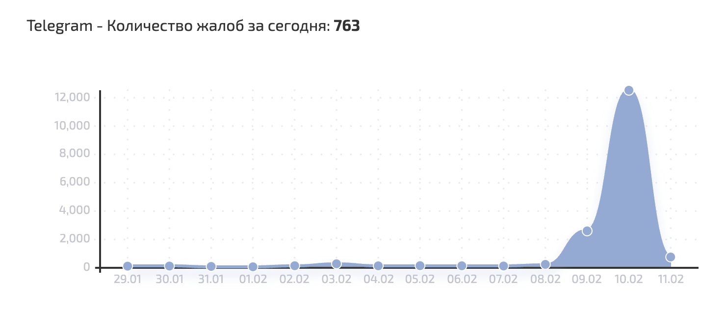 Количество жалоб на сбои в работе мессенджера Telegram начало уменьшаться после объявления Роскомнадзора о его блокировке, следует из данных сервисов сбой.рф. и Downdetector.