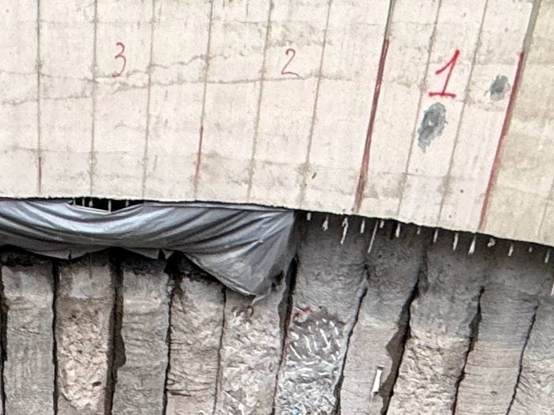 Армирование проводят в каждой второй скважине — армированные сваи пересекаются с неармированными, что формирует прочную и водонепроницаемую стену. На данный момент выполнена примерно половина неармированных свай, для армированных готовят арматурные каркасы.