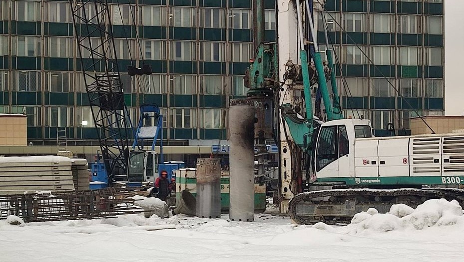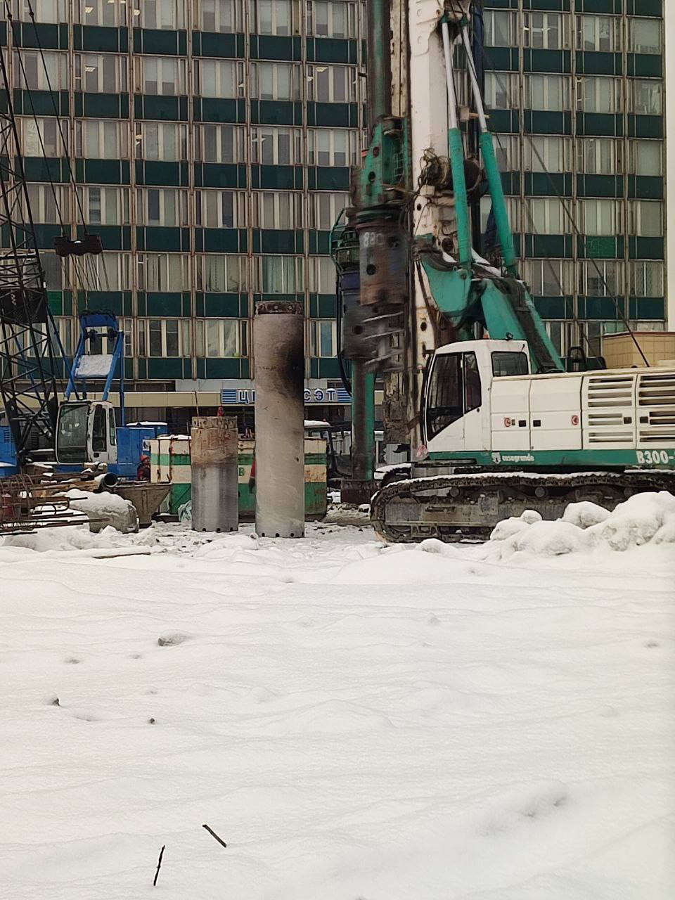На текущем этапе сооружают стартовый котлован и ограждающую конструкцию по периметру из буросекущих свай. Контур состоит из 82 неармированных, 73 армированных и 11 комбинированных свай. Скважины бурят установкой диаметром 880 мм на глубину 27 м с погружением обсадной трубы. Грунт извлекают буровым шнеком.