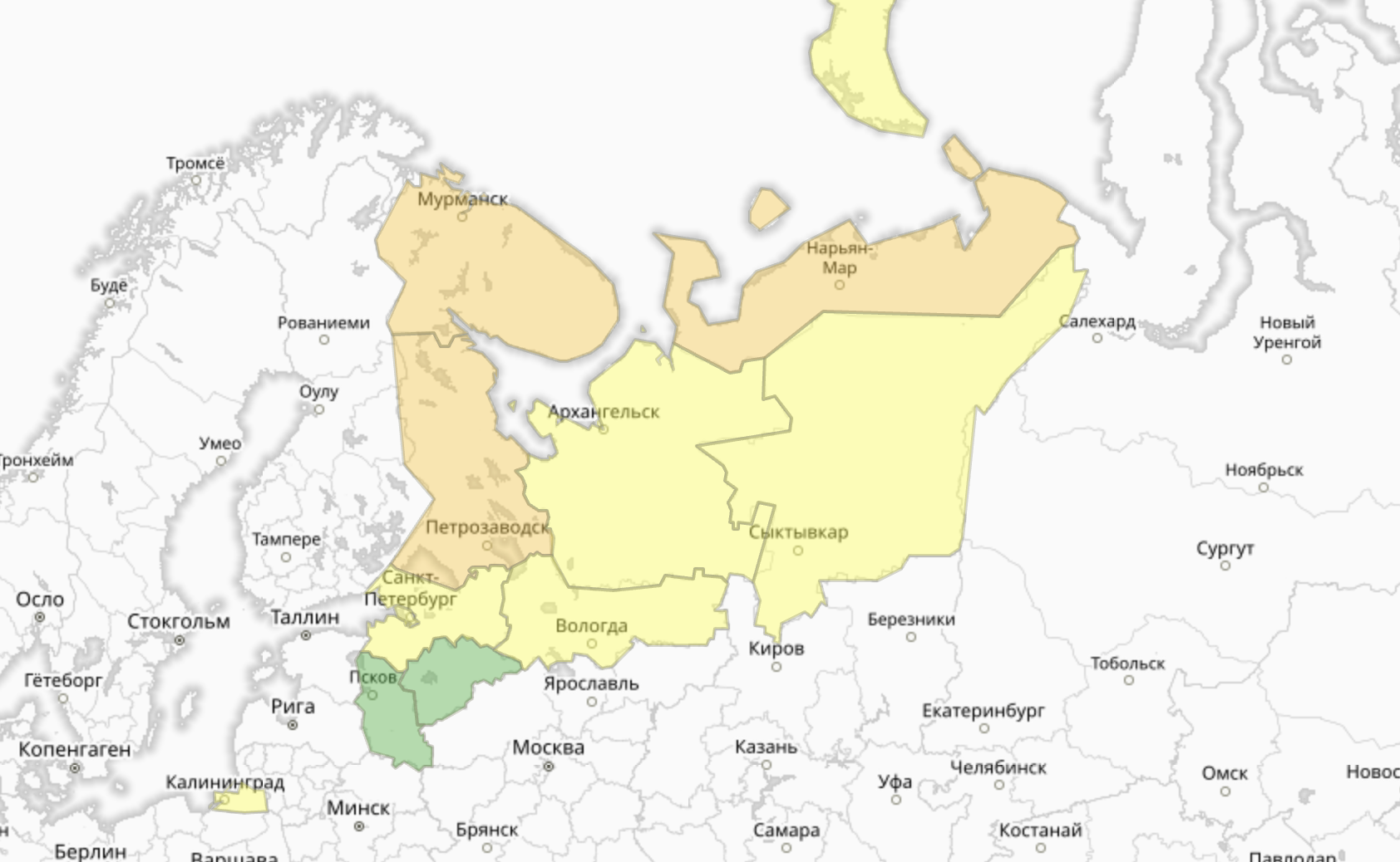 Прогностическая карта предупреждений для СЗФО