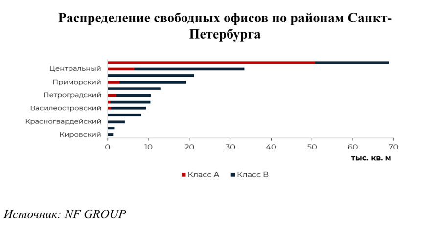 Таким образом, сегодня свободно около 202 тыс. м2 – 64 тыс. м2 в классе А и 138 тыс. м2 в классе В.