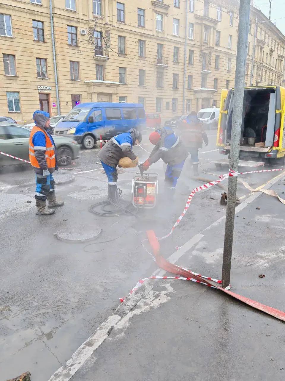 UPD: в пресс-службе "Теплосети Санкт-Петербурга" уточнили, что горячее водоснабжение в ближайших домах будет сохранено. С 13:55 в дома ограничена подача отопления. Срок проведения работ на месте аварии составляет 20 часов и ограничен нормативами.
