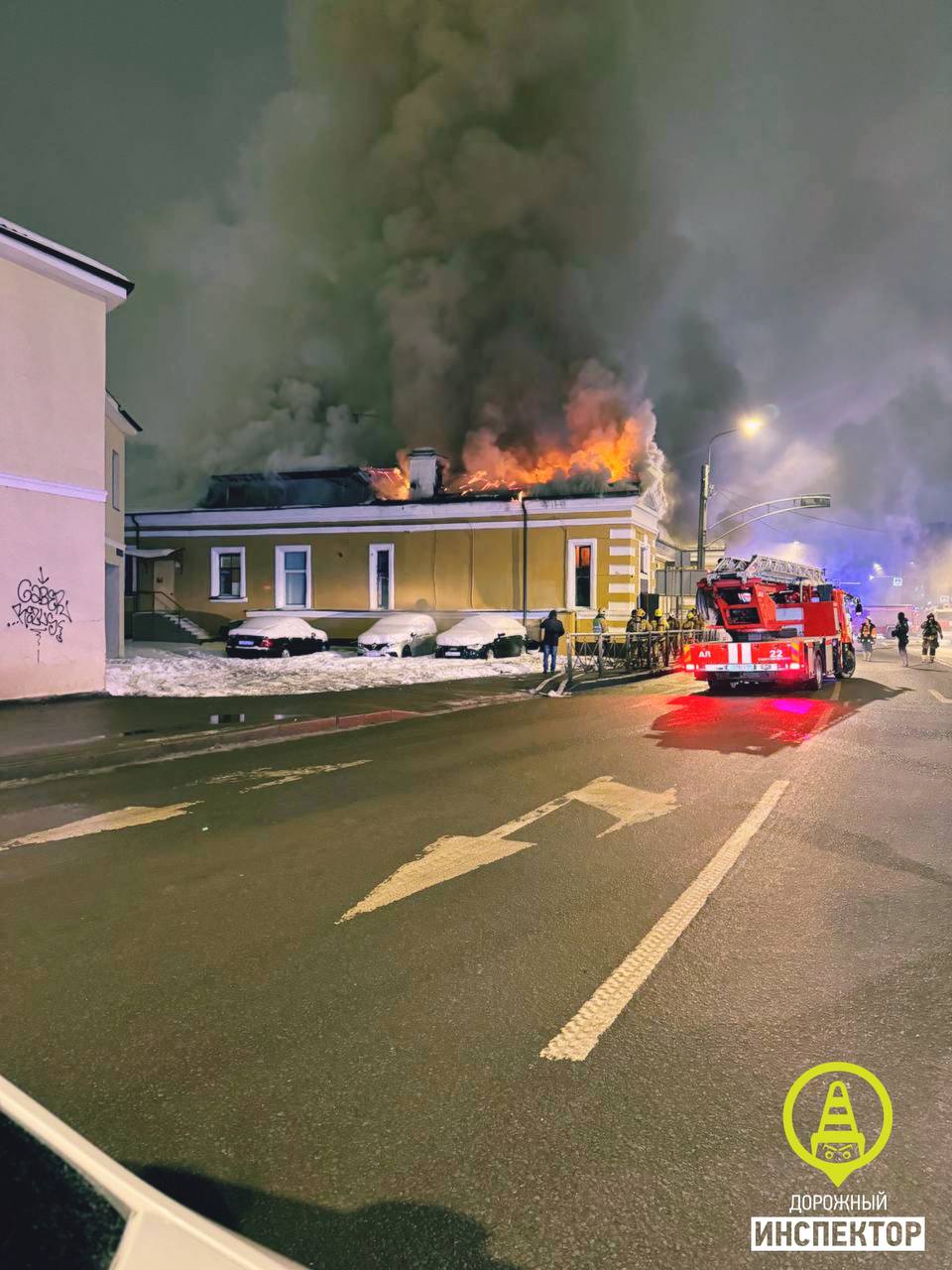 UPD: в 7:46 пожар был локализован. Огонь охватил площадь в 300 м2. Сведения о пострадавших не поступали.