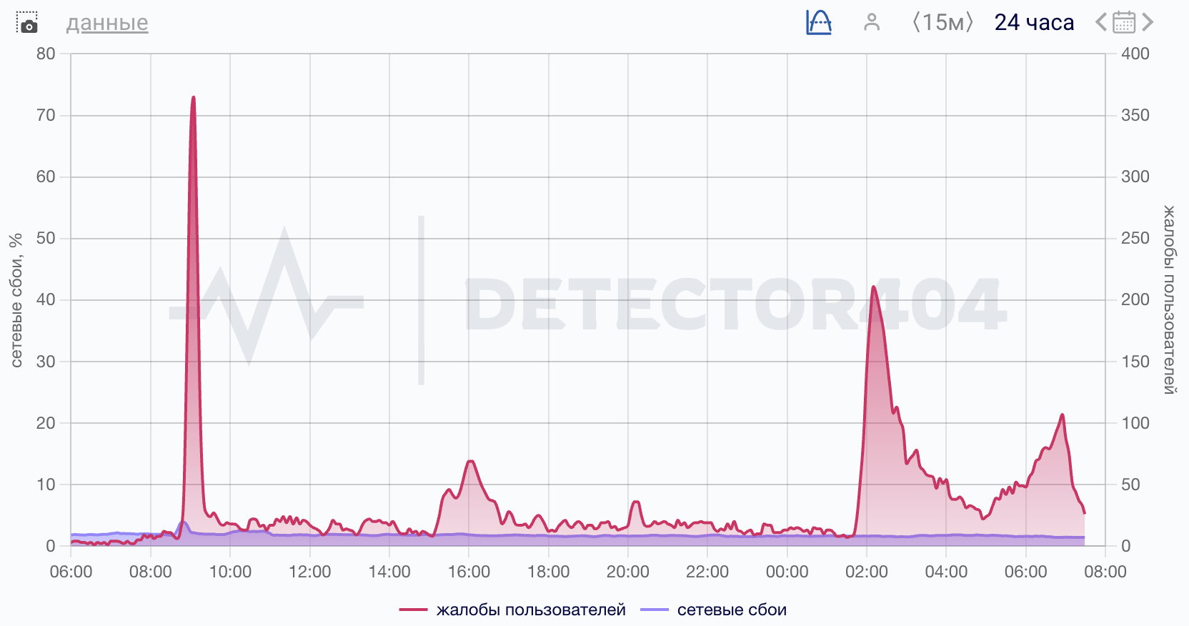 За последний час на работу Интернета на платформе DownDetector пожаловалось почти 250 человек. Всего за последние сутки зарегистрировано почти 3,4 тыс. жалоб.