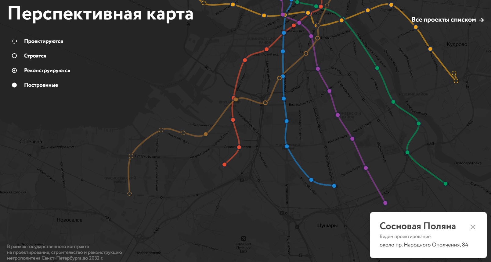 "Сосновая поляна" на перспективной карте метро Петербурга