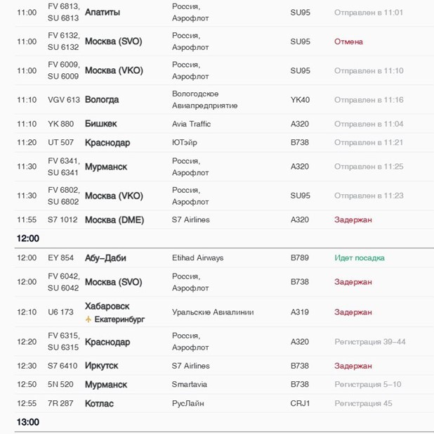 Согласно данным с онлайн-табло вылета петербургского аэропорта Пулково, несколько рейсов в Москву всё-таки оказались отменены, ещё пара задержаны. Сейчас своего вылета ожидают пассажиры рейса на 12:00 по мск.