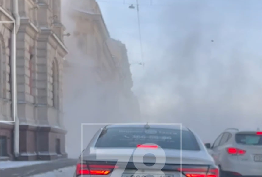 Дорогу на набережной Фонтанки заволокло паром, одна машина провалилась в дыру в асфальте, сообщают очевидцы.