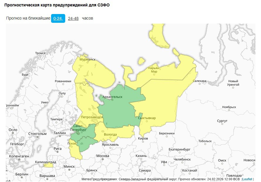 Прогностическая карта предупреждений для СЗФО