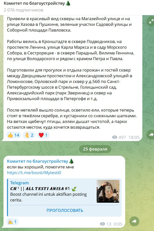 Telegram-каналы комитета по благоустройству Петербурга и его председателя Сергея Петриченко ночью 25 февраля оказались взломаны мошенниками, стало известно "ДП".