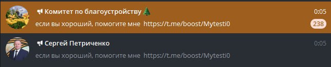 Одинаковые сообщения в telegram-каналах Комблага и Петриченко появились в 00:05 по мск.