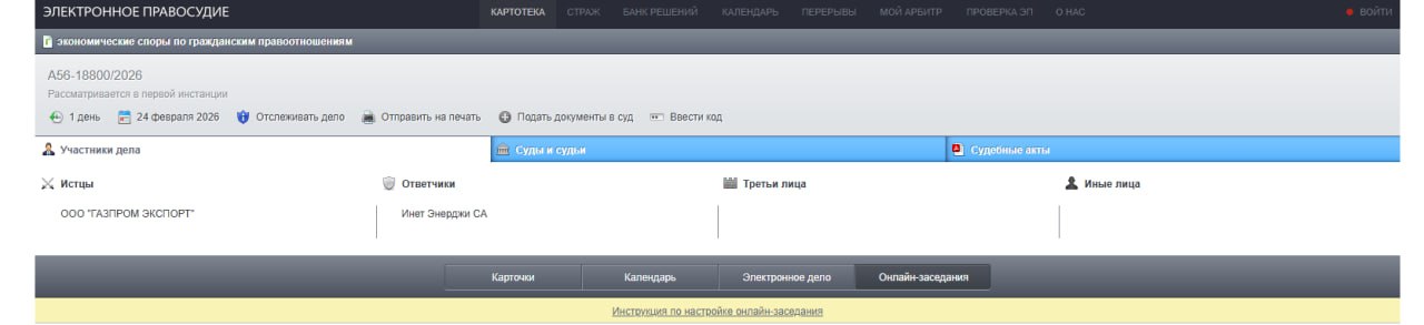 "Газпром экспорт" подал иск к швейцарскому энергетическому трейдеру Enet Energy SA, следует из данных картотеки дел арбитражного суда Петербурга и Ленинградской области.