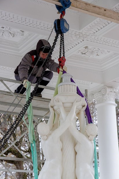"Это так называемая "невозможная скульптура": мрамор идеально подходит для воплощения авторского замысла, а все нюансы камня учтены при создании композиции. Заказчиком скульптуры выступил император Александр I, сын первых владельцев Павловска. Государь подарил шедевр Трискорни своей матери, вдовствующей императрице Марии Федоровне. Проект установки скульптуры и её композиции выполнен К.И. Росси", — поделились эксперты.
