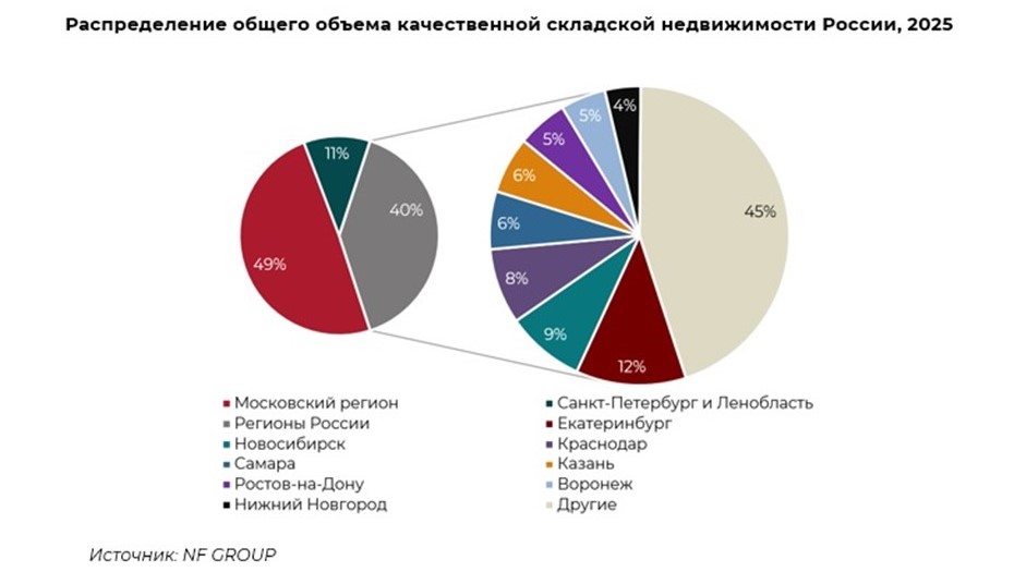 По словам аналитиков, в регионах России без учёта Петербурга и Ленинградской области, а также Москвы и Московской области в 2025 году ввели рекордные 4 млн м2 складской недвижимости (это вдвое больше, чем в 2024 году).