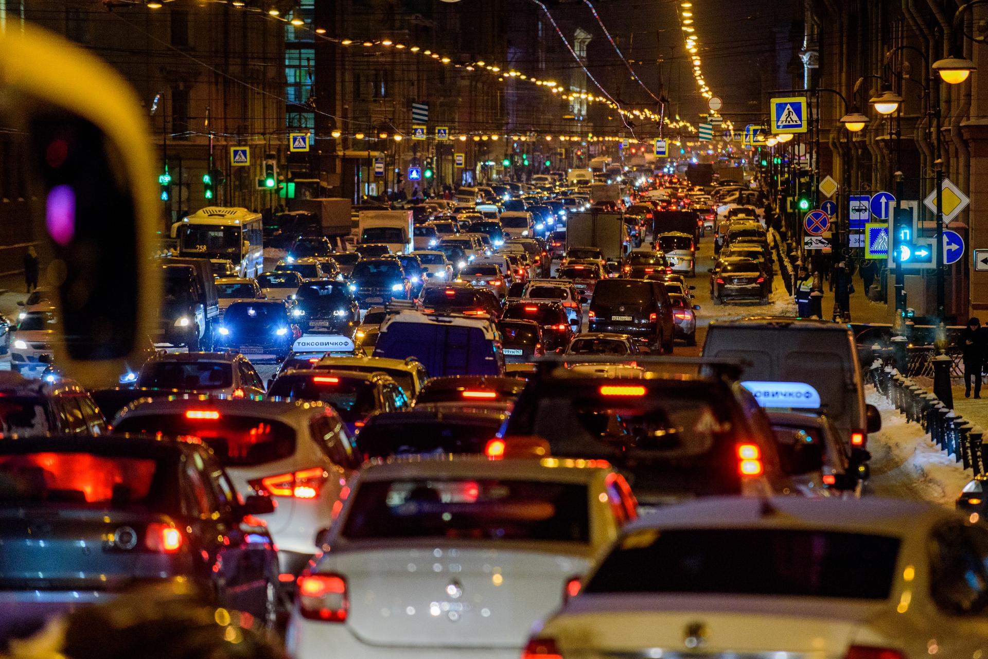Петербург вечером 26 февраля сковали 8-балльные пробки из-за метели со снегопадом в городе, следует из данных сервиса "Яндекс.Карты".