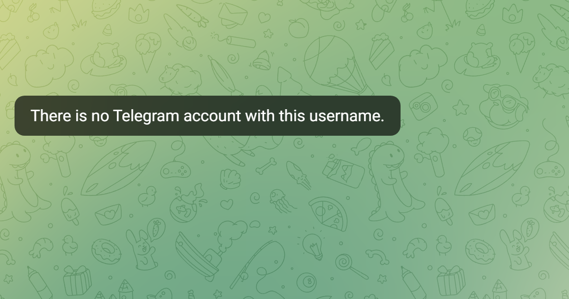 "Учётной записи Telegram с таким именем пользователя не существует", — гласит плашка, "выскакивающая" при попытке перейти по нужному веб-адресу.