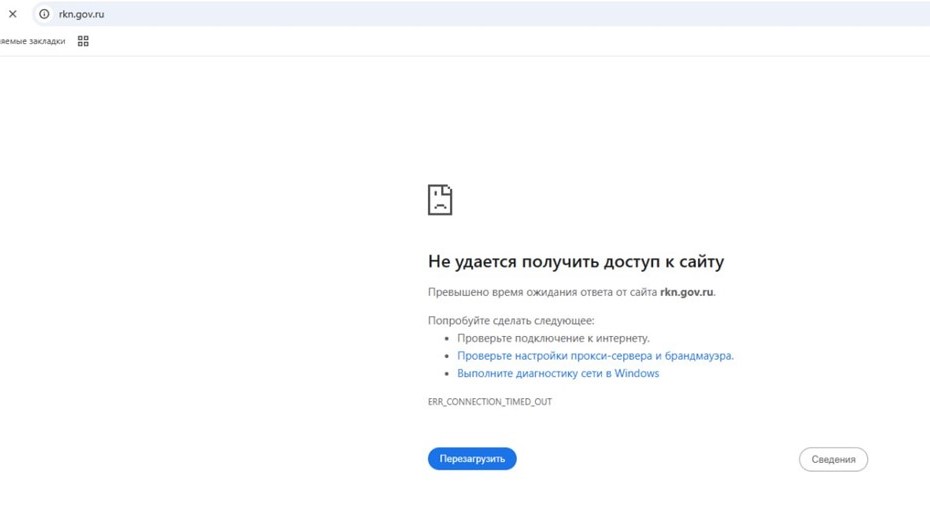 При попытке открыть сайт ведомства всплывают уведомления о том, что не удаётся получить доступ к сайту и о превышении времени ожидания открытия ресурса.