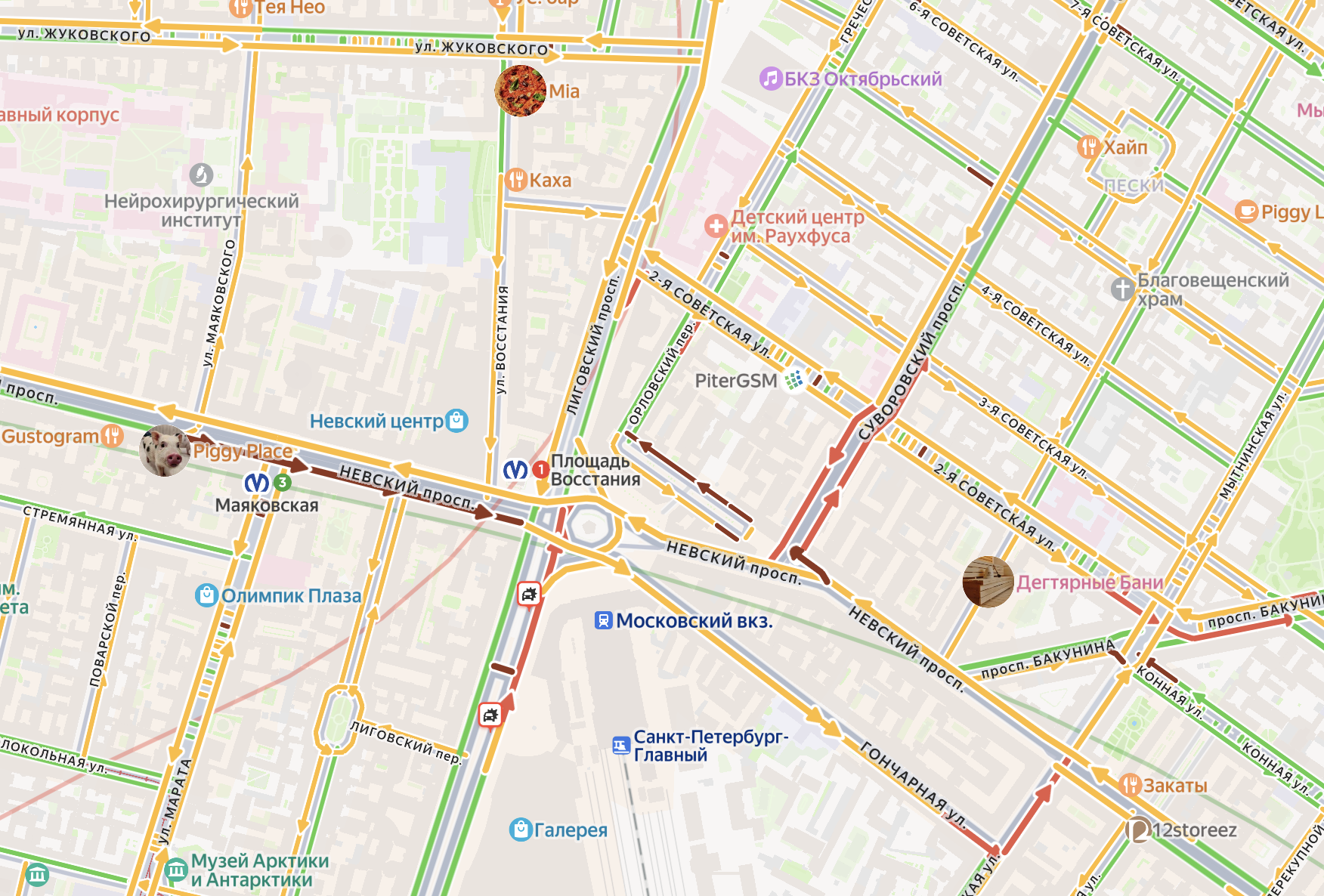 По данным "Яндекс Карт", дорожный затор растянулся перед Невским проспектом от переулка Ульяны Громовой.